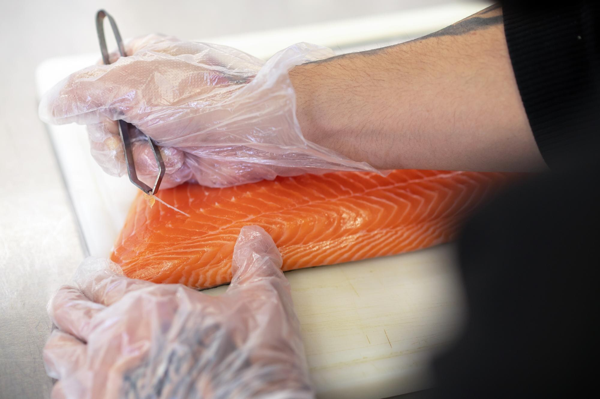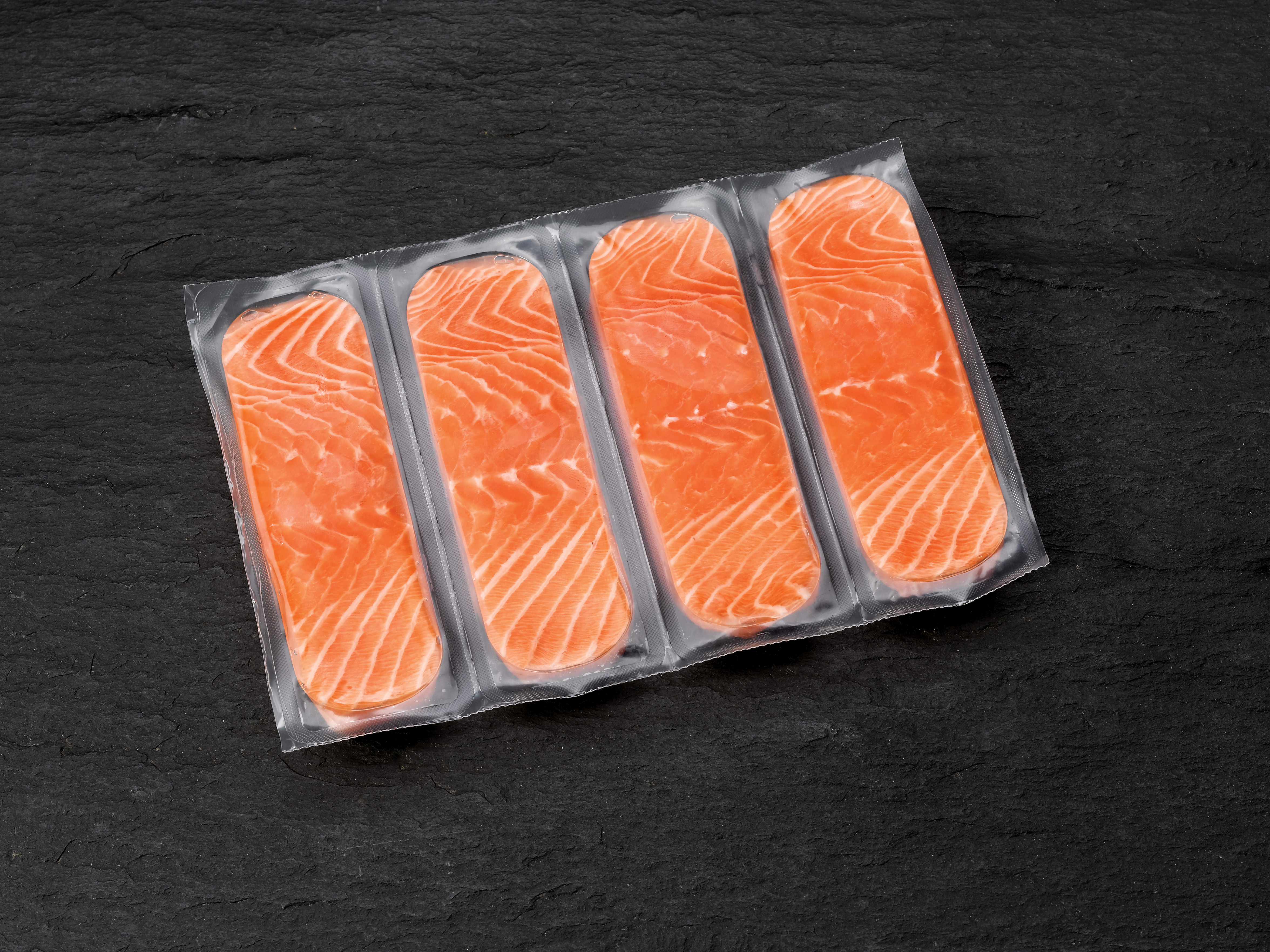 We process salmon into a wide range of retail and foodservice formats, including cold and hot-smoked slices, portions, loins, and vacuum-packed cuts.